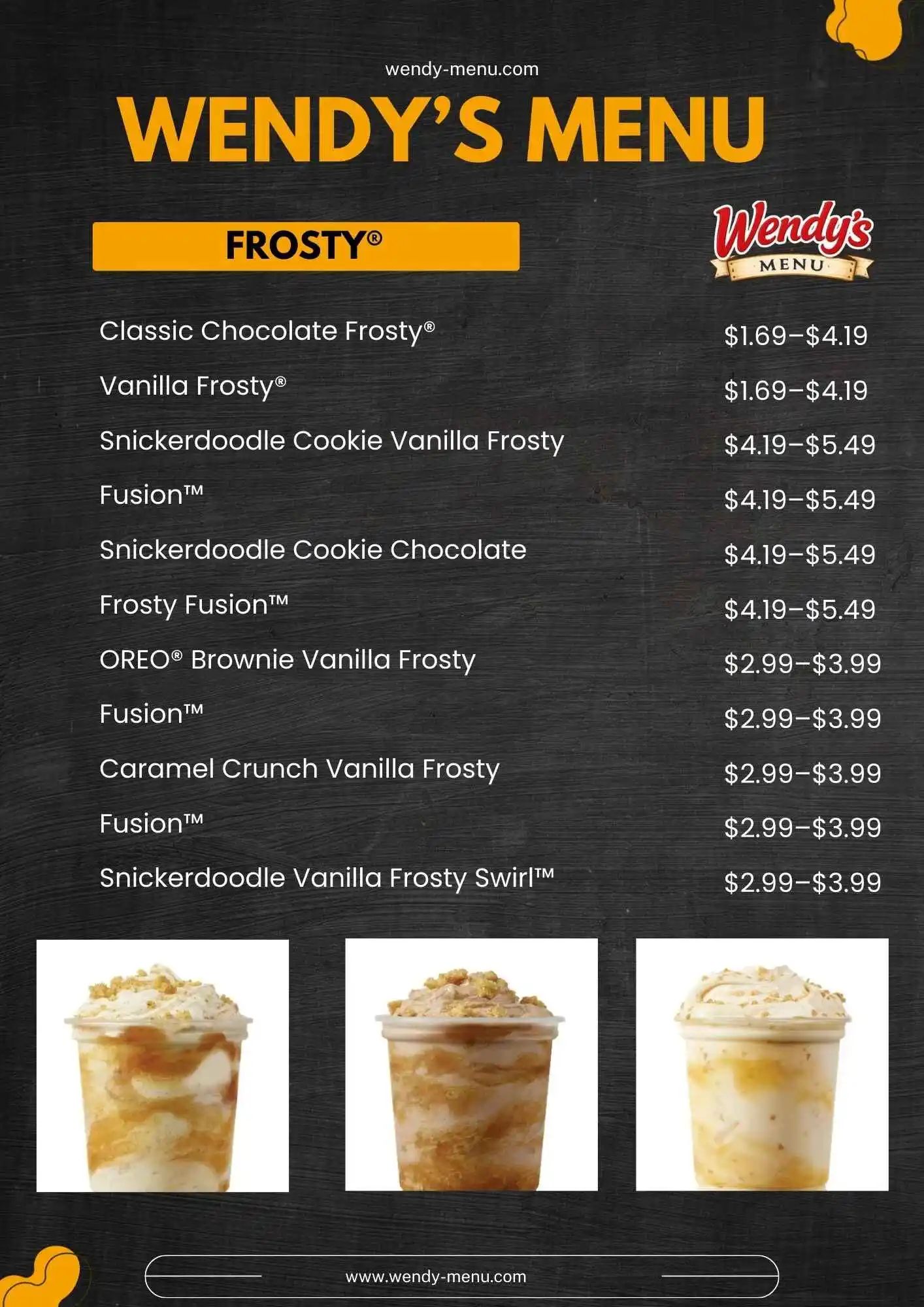 A Frosty is Wendy’s famous frozen dessert — thicker than a milkshake but softer than ice cream. It originally came in one chocolate-vanilla blend but is now offered in Classic Chocolate and rotating seasonal flavors like Vanilla, Strawberry, or Peppermint.
